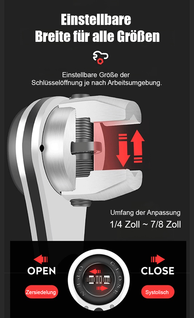 Verstellbarer Ratschen-Mehrgrößenschlüssel