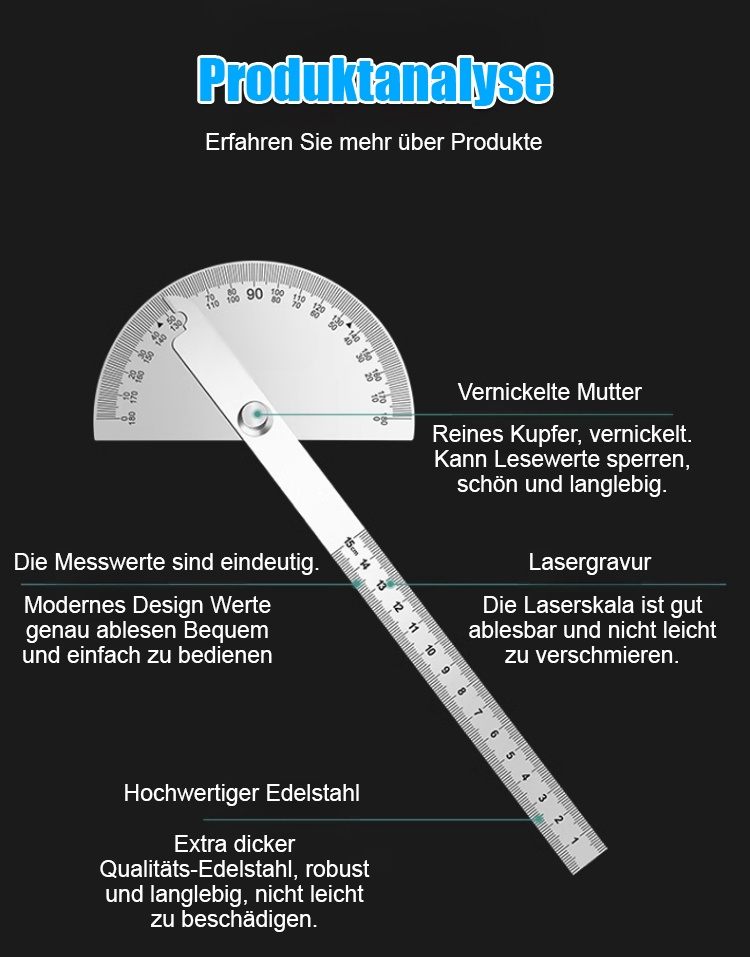 【Tragbar und präzise】Edelstahl-Einarmwinkelmesser