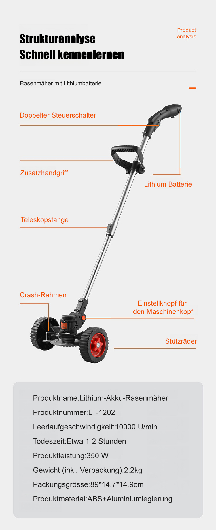 【Nicht müde Rücken】Lithium elektrische Hand-Push zweirädrigen Rasenmäher