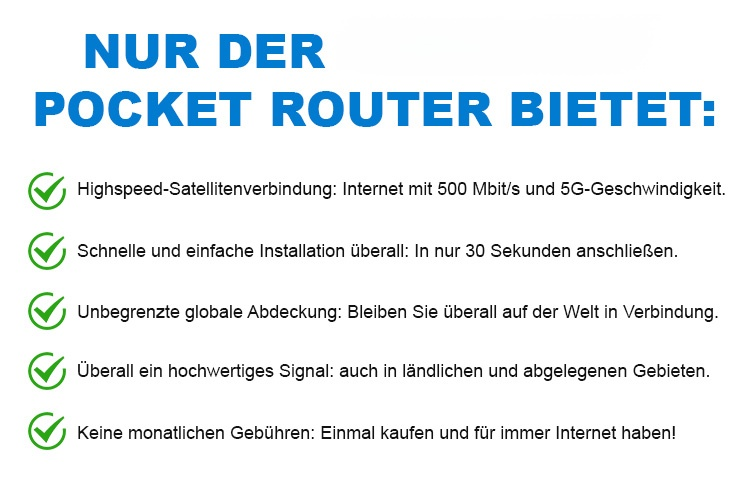 Zugriff auf das Internet überall auf der Welt. Sie können sich sofort anschließen, indem Sie einfach starten. Trotz seiner kleinen Größe verfügt er über leistungsstarke Netzwerkfunktionen und die neueste Wi-Fi-Technologie, sei es in der Stadt, auf dem Land oder in den Bergen.