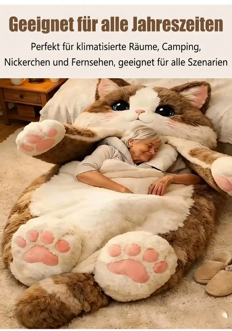 🐱 Vergessen Sie dünne Decken. Tauchen Sie ein in eine riesige, flauschige Umarmung. Kuscheliger Katzenschlafsack für Erwachsene